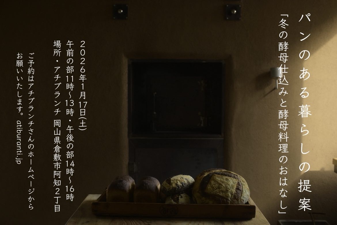 毎年大好評の コウボパン 小さじいちさんによる「冬の酵母仕込みと酵母料理のおはなし」ワークショップの日程が今年も決まりました。